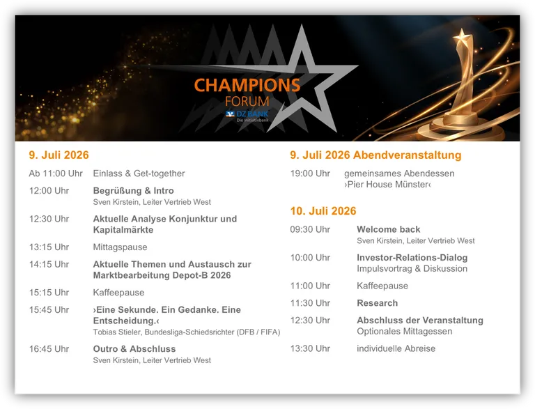 Reise- und Übernachtungskosten werden nicht von der DZ BANK übernommen.